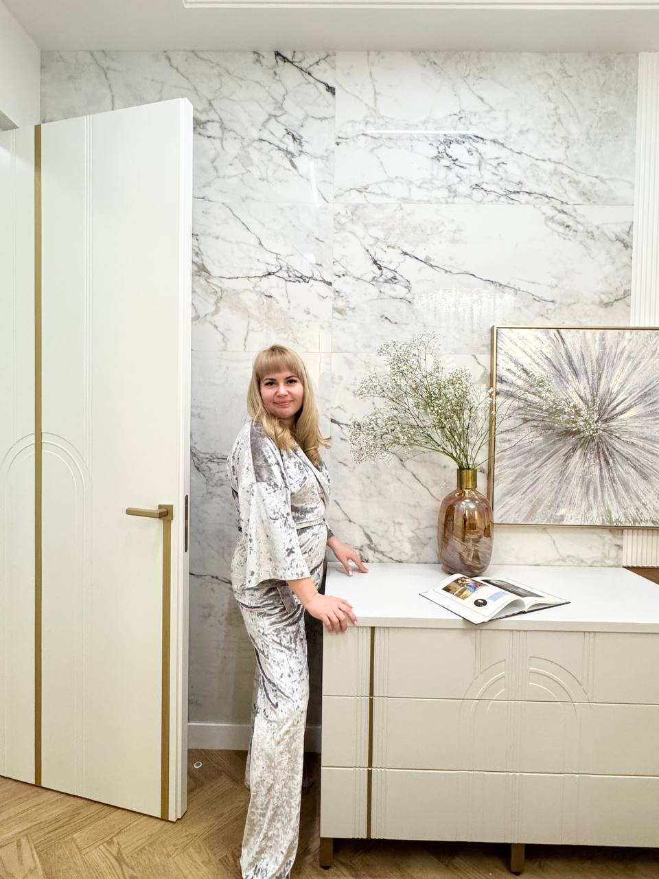 Вдохновляюсь не только интерьерными трендами, но и искусством. Я использую в проектах картины на заказ — объемные, фактурные, под конкретного заказчика. Это делает интерьер уникальным.